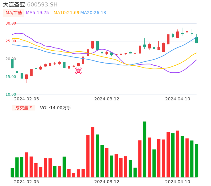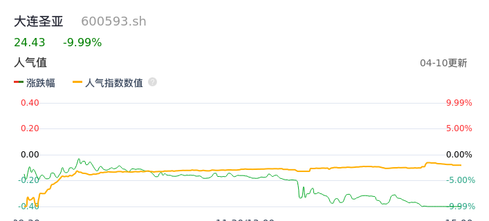 04月10日,大连圣亚收报24.43,股价涨幅-9.99%,成交金额3.58亿元,换手率10.87%。