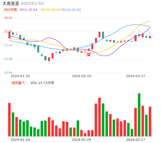 03月27日,大连圣亚收报23.32,股价涨幅2.15%,成交金额3.77亿元,换手率12.21%。