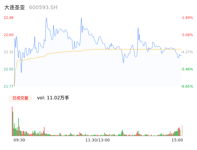 04月24日,大连圣亚收报22.27,股价涨幅-4.50%,成交金额2.46亿元,换手率8.56%。