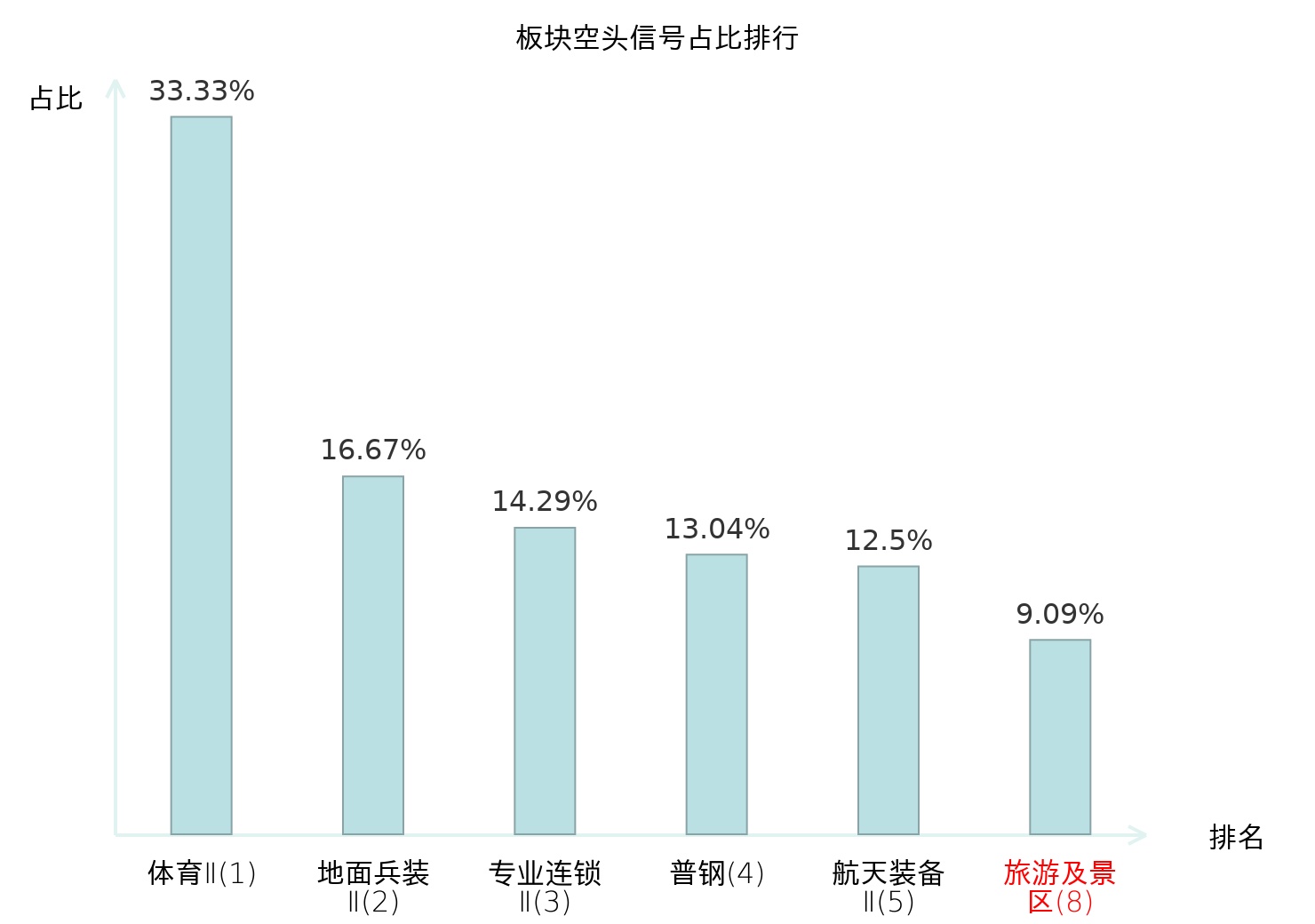 全市场所有行业板块中主力空头信号占比排名中,体育Ⅱ板块位居第一。地面兵装Ⅱ板块名次提升最快,较昨日上升108位。