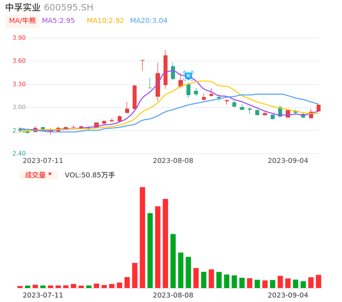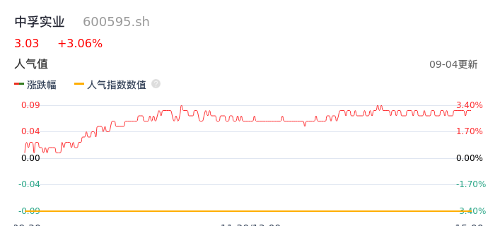 09月04日,中孚实业收报3.03,股价涨幅3.06%,成交金额1.53亿元,换手率1.28%。