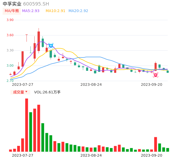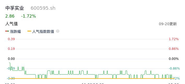 09月20日,中孚实业收报2.86,股价涨幅-1.72%,成交金额7645.59万元,换手率0.67%。