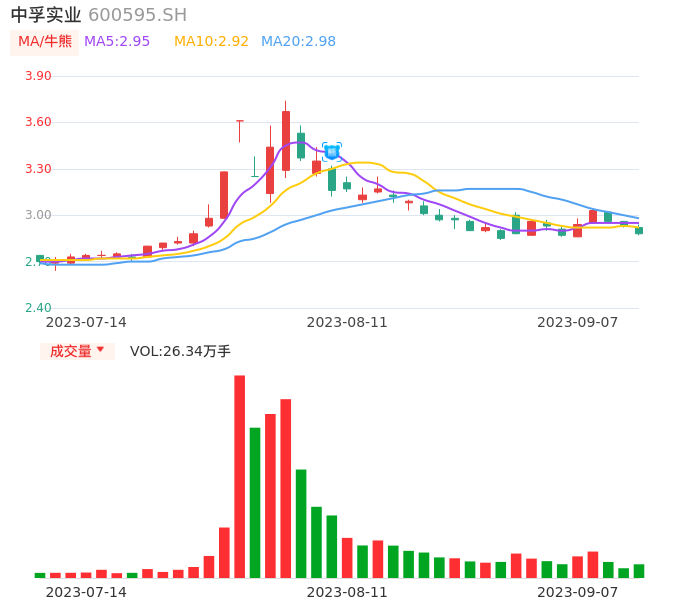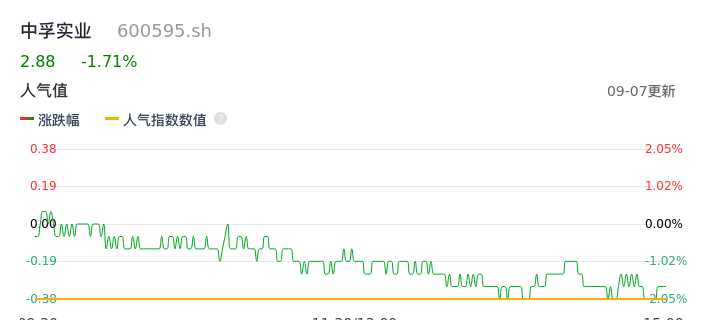 09月07日,中孚实业收报2.88,股价涨幅-1.71%,成交金额7630.36万元,换手率0.66%。