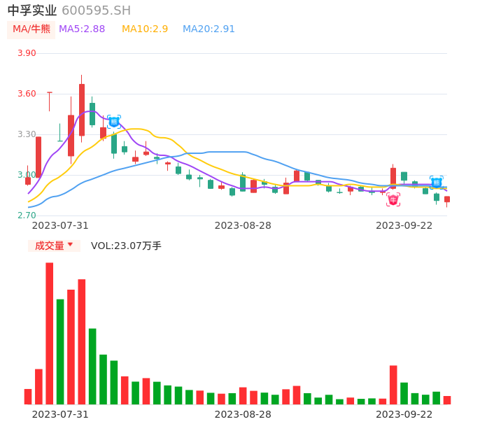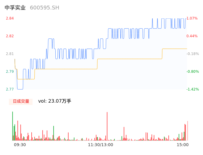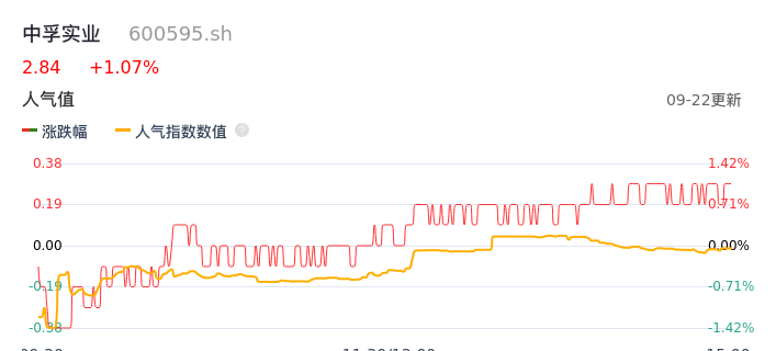 09月22日,中孚实业收报2.84,股价涨幅1.07%,成交金额6484.73万元,换手率0.58%。