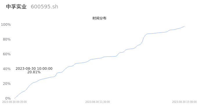 600595中孚实业2023年08月30日成交32.38万手,成交金额9497.49万元,相较昨日缩量4.90万手,换手率0.82%,成交清淡。