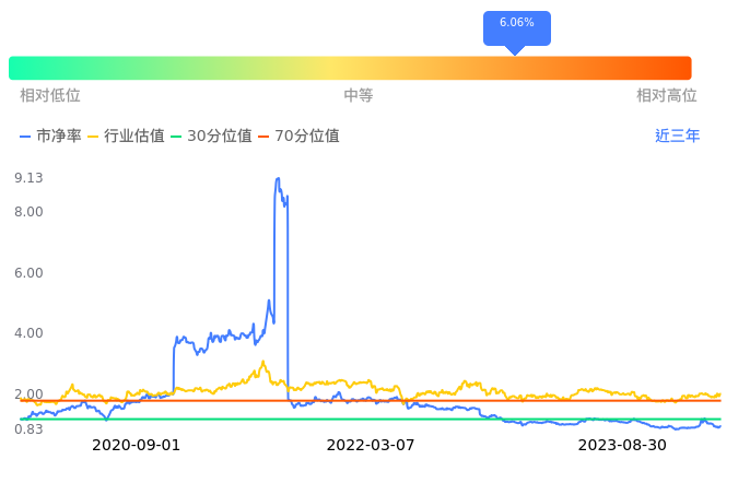 中孚实业当前市净率PB为0.90,在所属的工业金属中,市净率PB排3,前五名分别为南山铝业市净率0.79、江西铜业市净率0.83、中孚实业市净率0.90、明泰铝业市净率1.07、焦作万方市净率1.12。中孚实业当前市净率PB为0.90,超过近3年6.06%的历史数据。