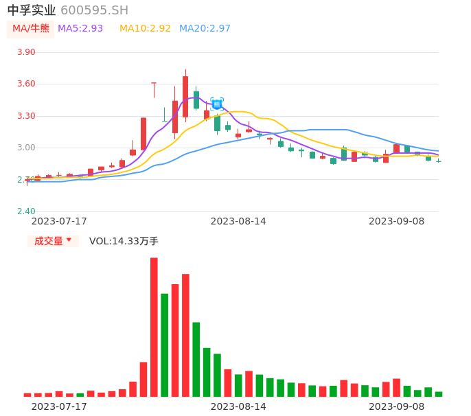 09月08日,中孚实业收报2.87,股价涨幅-0.35%,成交金额4120.77万元,换手率0.36%。