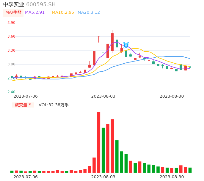 08月30日,中孚实业收报2.93,股价涨幅-1.01%,成交金额9497.49万元,换手率0.82%。