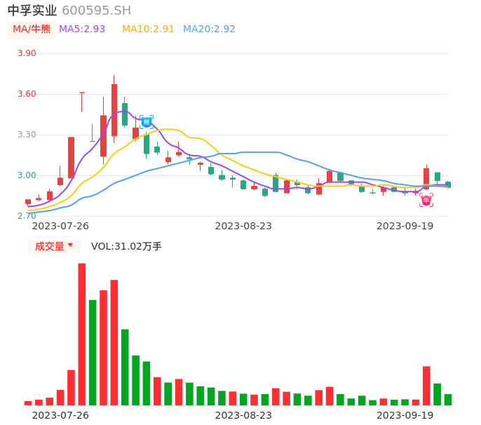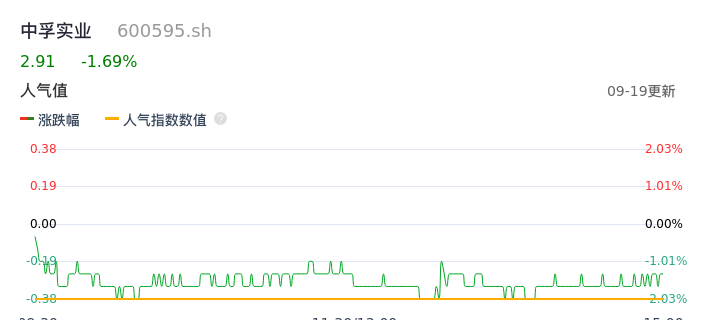09月19日,中孚实业收报2.91,股价涨幅-1.69%,成交金额9042.75万元,换手率0.78%。