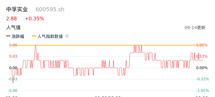 09月14日,中孚实业收报2.88,股价涨幅0.35%,成交金额4581.98万元,换手率0.40%。