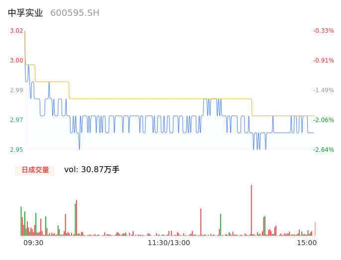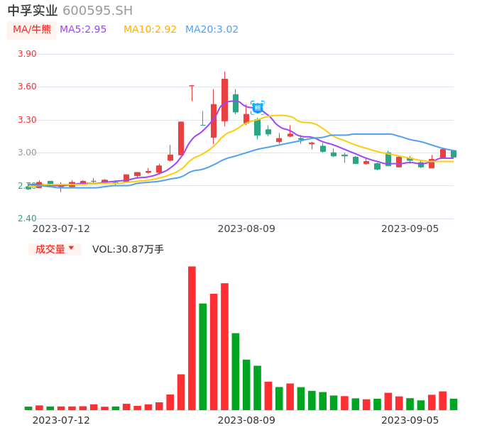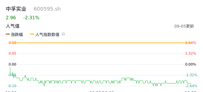 09月05日,中孚实业收报2.96,股价涨幅-2.31%,成交金额9170.92万元,换手率0.78%。