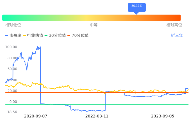 中孚实业当前市盈率PETTM为24.70,在所属的工业金属中,市盈率PETTM排21名。前5名分别为神火股份PETTM6.63、新疆众和PETTM7.04、宁波富邦PETTM8.62、西部矿业PETTM9.47、亚太科技PETTM10.39。从PETTM估值走势数据来看,中孚实业当前市盈率PETTM为24.70,超过近3年80.11%的历史数据。