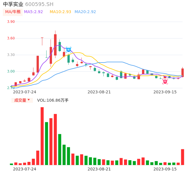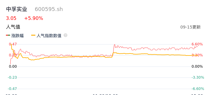 09月15日,中孚实业收报3.05,股价涨幅5.90%,成交金额3.22亿元,换手率2.70%。