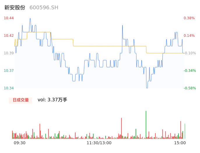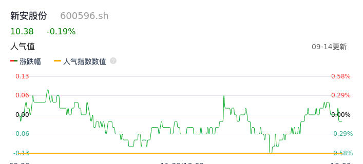 09月14日,新安股份收报10.38,股价涨幅-0.19%,成交金额3504.82万元,换手率0.33%。