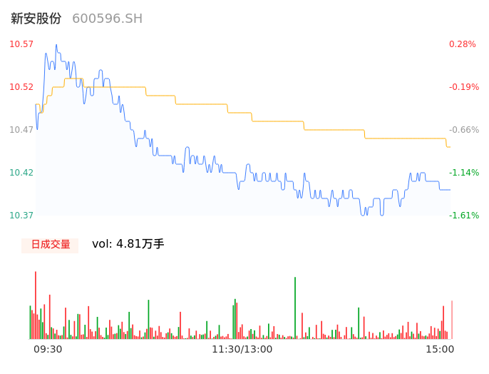 09月13日,新安股份收报10.40,股价涨幅-1.33%,成交金额5032.34万元,换手率0.47%。