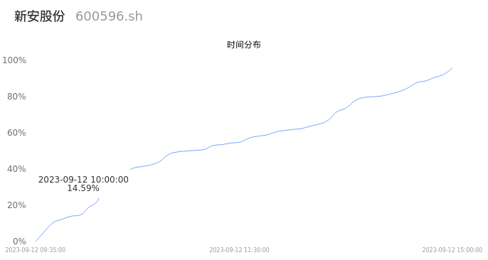 600596新安股份2023年09月12日成交6.31万手,成交金额6633.09万元,相较昨日放量1.60万手,换手率0.61%,成交清淡。