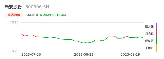 我们来看一下该股的九方特色指标强弱趋势的情况:新安股份自09月13日从持仓区下穿到观望区,股价近期持续走弱。短期已经进入空头行情,且下跌动能仍未衰竭。建议继续谨慎观望。