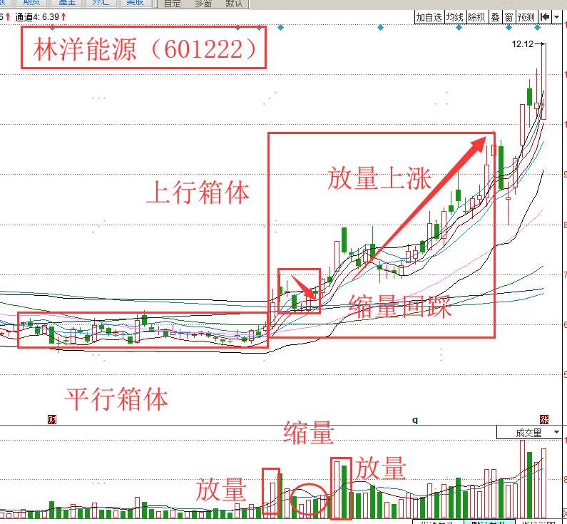 所以,在个股突破平行箱体的时候,只要回踩站稳支撑位置,就可以确定上升箱体形态,大胆介入就能享受主力拉升的快感!