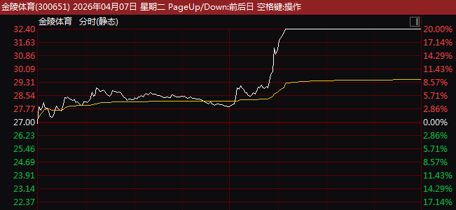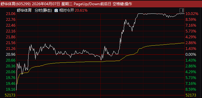 市场热点方面,体育概念股全天保持强势,午后盘中一度出现放量拉升现象,板块指数飙升逾11%,创历史单日最大涨幅。金陵体育(300651)午后直线20%涨停,共创草坪、中体产业等也在中午开盘后快速涨停,舒华体育(605299)则在临近收盘封死涨停,近16个交易日7度涨停。