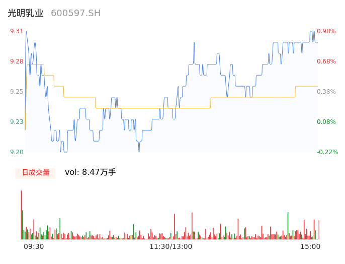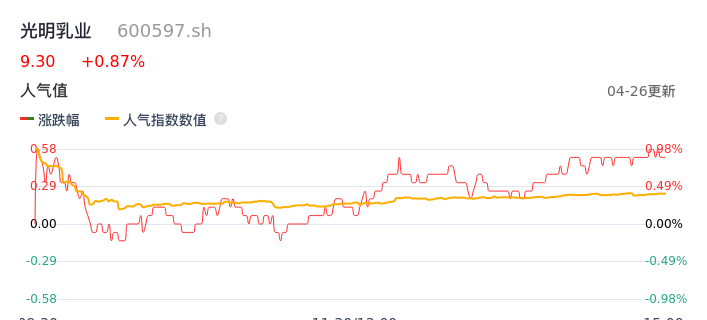 04月26日,光明乳业收报9.30,股价涨幅0.87%,成交金额7845.93万元,换手率0.61%。