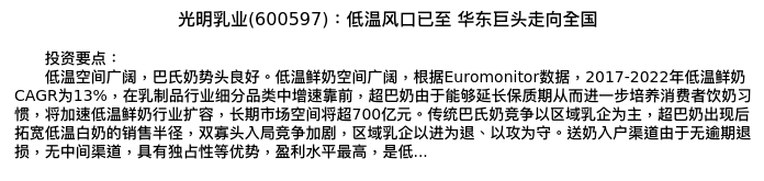 值得注意的是:2024年04月华福证券的刘畅/张东雪分析师,首次发布关于光明乳业的研究报告,标题为:光明乳业(600597):低温风口已至 华东巨头走向全国。