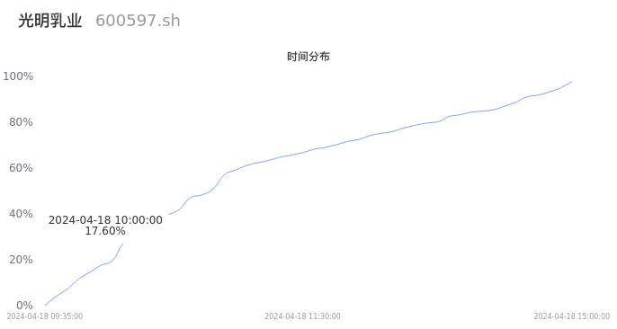 600597光明乳业2024年04月18日成交9.32万手,成交金额8524.84万元,相较昨日缩量1.48万手,换手率0.68%,成交清淡。