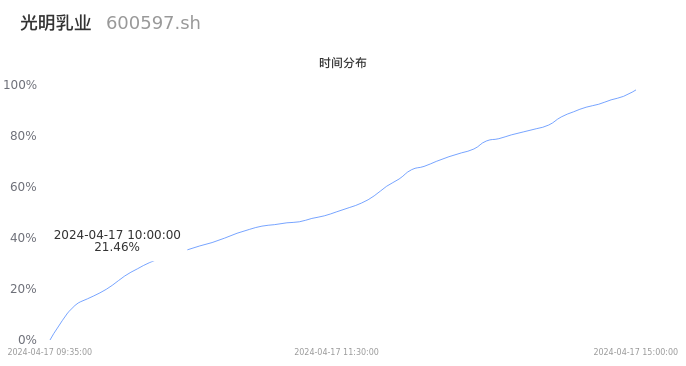 600597光明乳业2024年04月17日成交10.80万手,成交金额9780.55万元,相较昨日缩量2.23万手,换手率0.78%,成交清淡。