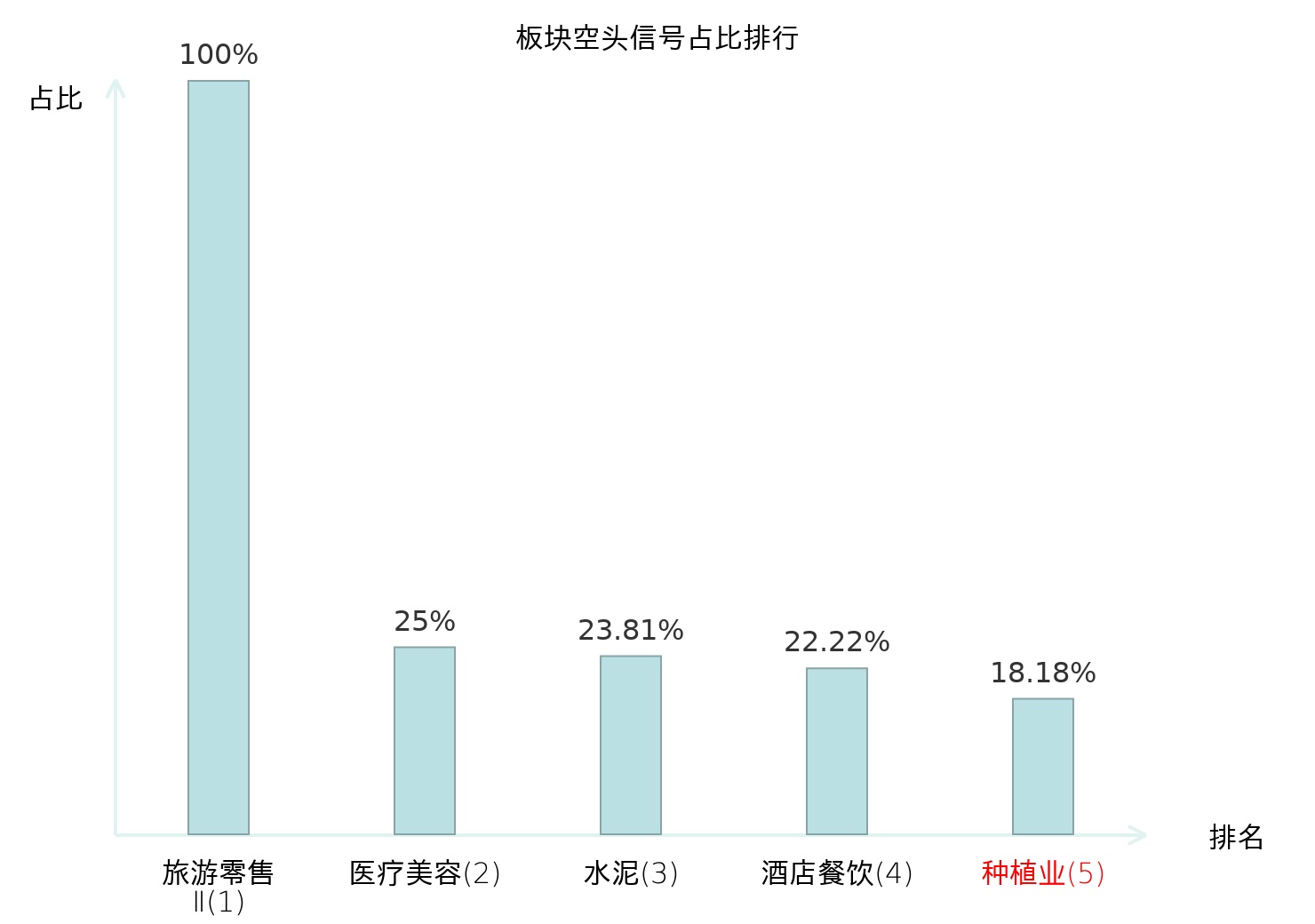 全市场所有行业板块中主力空头信号占比排名中,旅游零售Ⅱ板块位居第一。装修建材板块名次提升最快,较昨日上升112位。