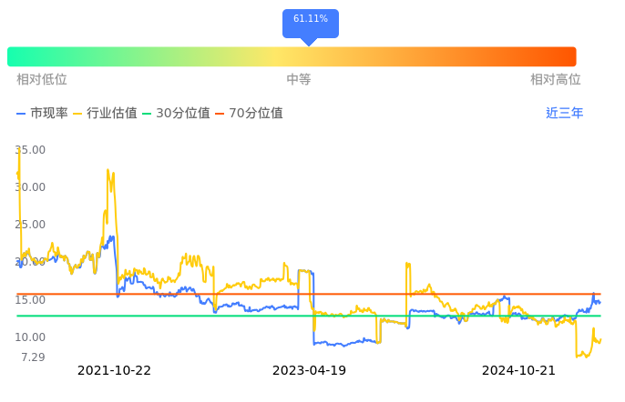 2024年10月21日,北大荒下跌0.21%收于14.15,今日成交金额3.80亿。下文将从市盈率PETTM、市净率PB、市现率3个角度去分析公司估值情况。