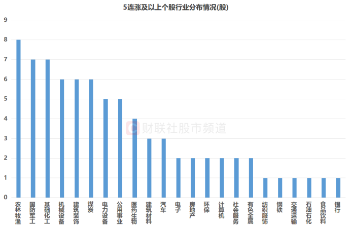 注:5连涨及以上个股行业分布情况(截至10月14日收盘)