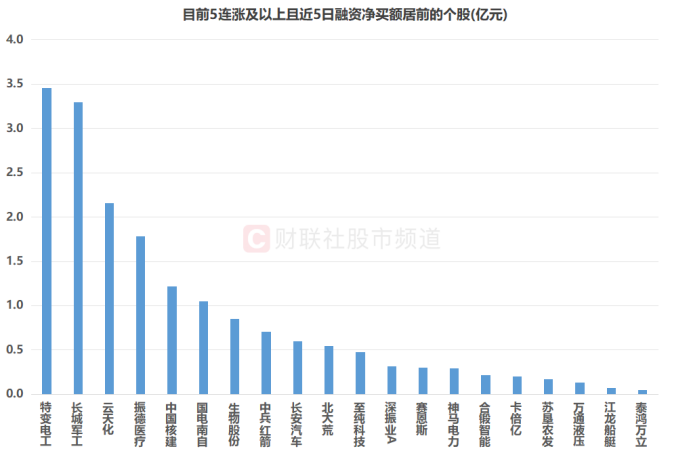 注:目前5连涨及以上且近5日融资净买额居前的个股(截至10月13日数据)