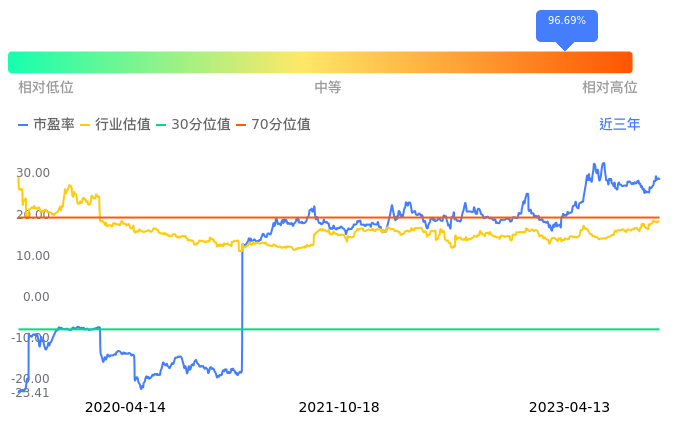 ST熊猫当前市盈率PETTM为28.46,在所属的多元金融中,市盈率PETTM排21名。前5名分别为江苏金租PETTM7.91、经纬纺机PETTM10.81、五矿资本PETTM11.12、越秀资本PETTM13.82、浙江东方PETTM14.54。从PETTM估值走势数据来看,ST熊猫当前市盈率PETTM为28.46,超过近3年96.69%的历史数据。