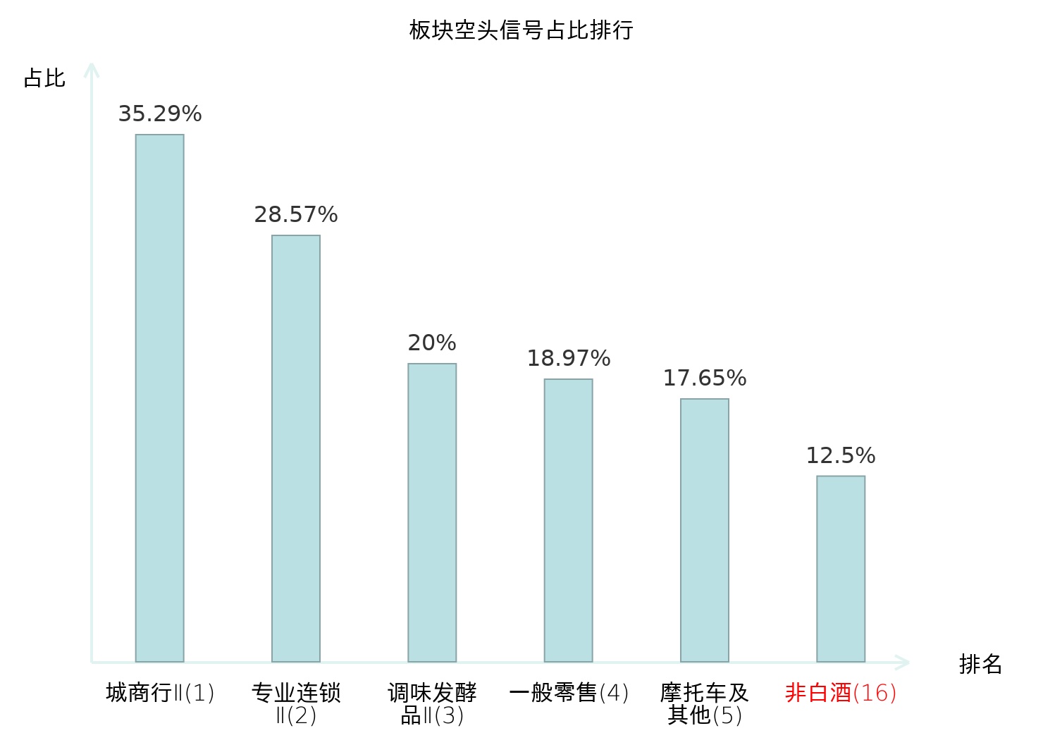 全市场所有行业板块中主力空头信号占比排名中,城商行Ⅱ板块位居第一。炼化及贸易板块名次提升最快,较昨日上升96位。