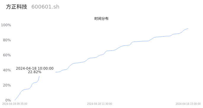 600601方正科技2024年04月18日成交28.72万手,成交金额6724.58万元,相较昨日缩量5.82万手,换手率0.69%,成交清淡。