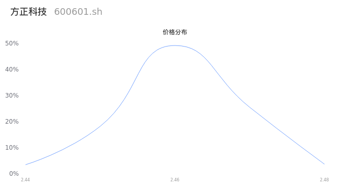 然后我们来看下当日成交的价格分布。经过分析发现,该股票当日成交价格波动低于10个最小波动价位,由于可以参考的样本量非常少,价格分布分析的结果不具有指导意义,下图仅供参考。