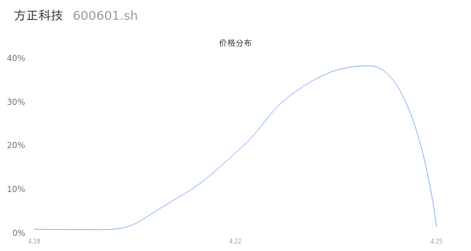 然后我们来看下当日成交的价格分布。经过分析发现,该股票当日成交价格波动低于10个最小波动价位,由于可以参考的样本量非常少,价格分布分析的结果不具有指导意义,下图仅供参考。