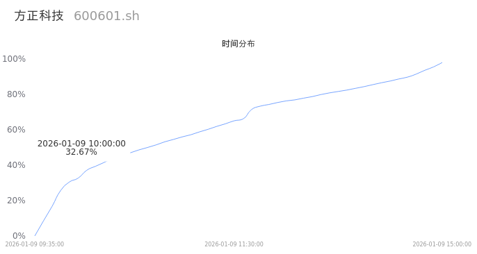 600601方正科技2026年01月09日成交196.14万手,成交金额25.40亿,相较昨日缩量70.24万手,换手率4.70%,成交清淡。