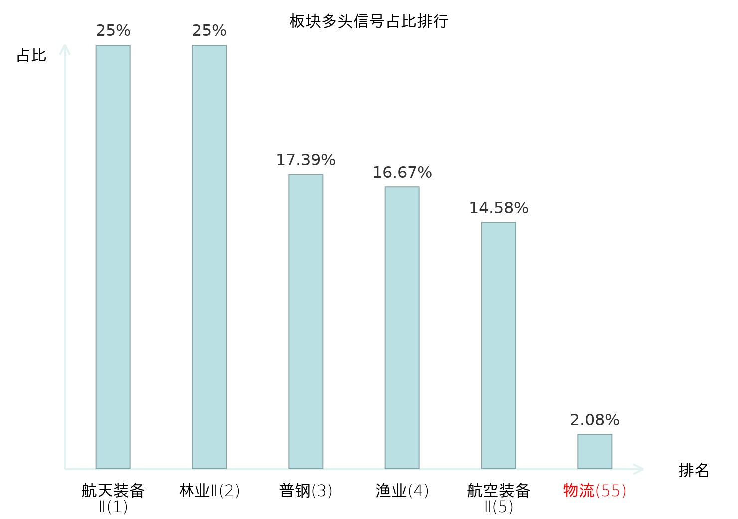 全市场所有行业板块中主力多头信号占比排名中,航天装备Ⅱ板块位居第一。林业Ⅱ板块名次提升最快,较昨日上升124位。