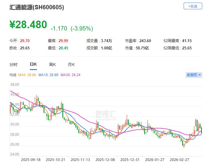 A股异动丨汇通能源跌4% 宁波沪通累计减持206.28万股