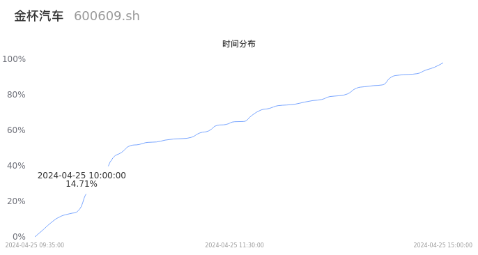 600609金杯汽车2024年04月25日成交7.26万手,成交金额3272.78万元,相较昨日放量785手,换手率0.55%,成交清淡。