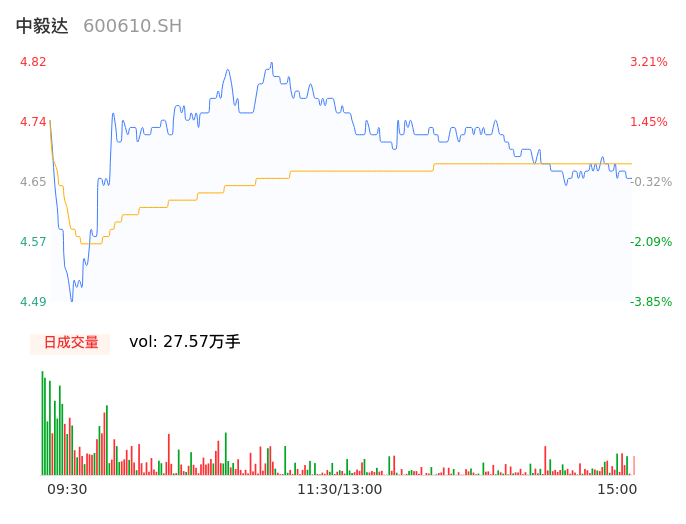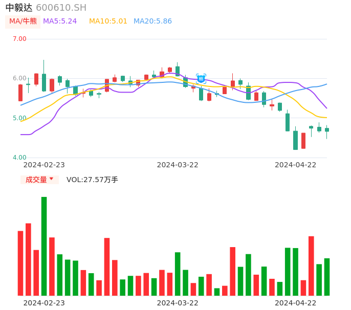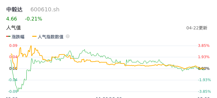 04月22日,中毅达收报4.66,股价涨幅-0.21%,成交金额1.29亿元,换手率6.14%。