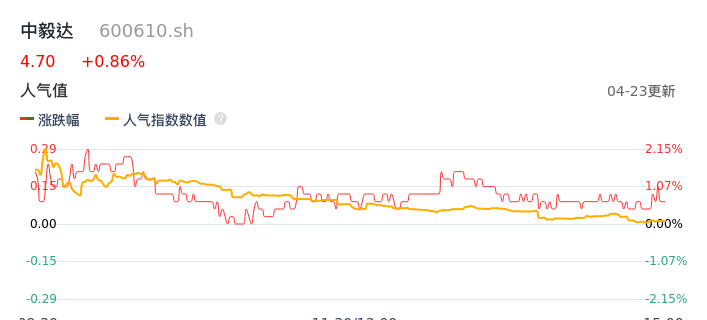 04月23日,中毅达收报4.70,股价涨幅0.86%,成交金额6665.86万元,换手率3.16%。