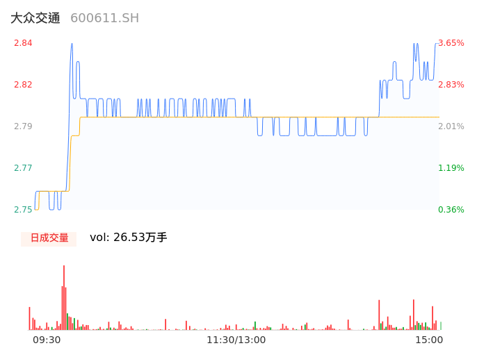 04月26日,大众交通收报2.83,股价涨幅3.28%,成交金额7439.36万元,换手率1.70%。