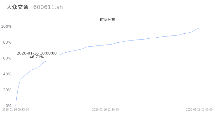 600611大众交通2026年01月16日成交78.74万手,成交金额4.70亿,相较昨日缩量78.41万手,换手率5.04%,成交清淡。