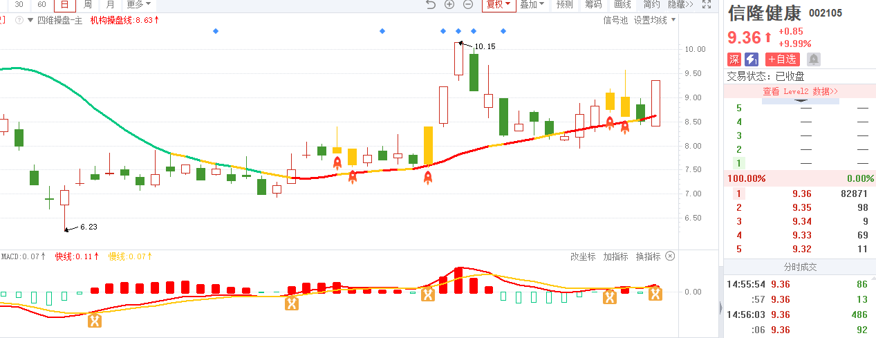 3)信隆健康-四维操盘-近期出现火箭信号且底部量柱由绿转红