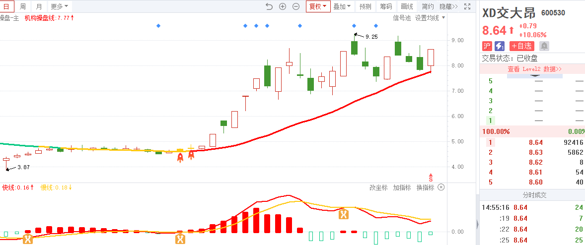 2)交大昂立-四维操盘-近期出现火箭信号且底部量柱由绿转红