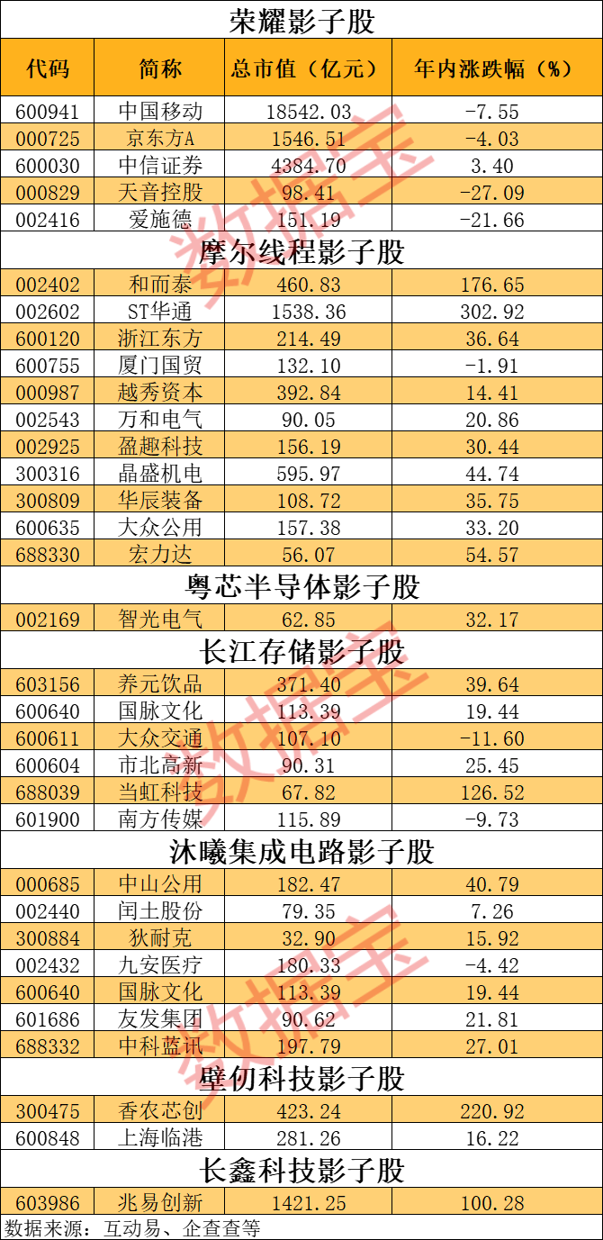 长鑫科技影子股方面,去年3月兆易创新发布公告,增资完成将持有长鑫科技约1.88%股权。