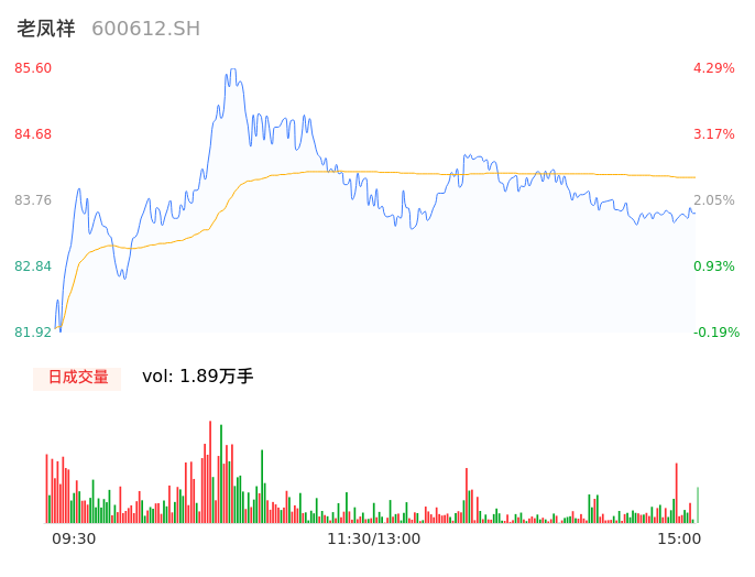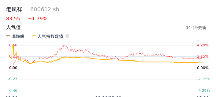 04月19日,老凤祥收报83.55,股价涨幅1.79%,成交金额1.59亿元,换手率0.60%。