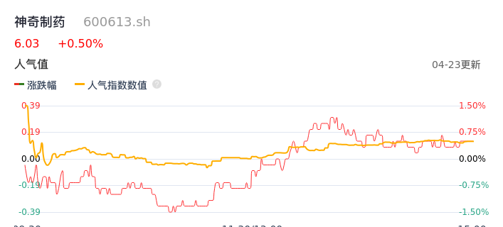 04月23日,神奇制药收报6.03,股价涨幅0.50%,成交金额2847.16万元,换手率0.99%。