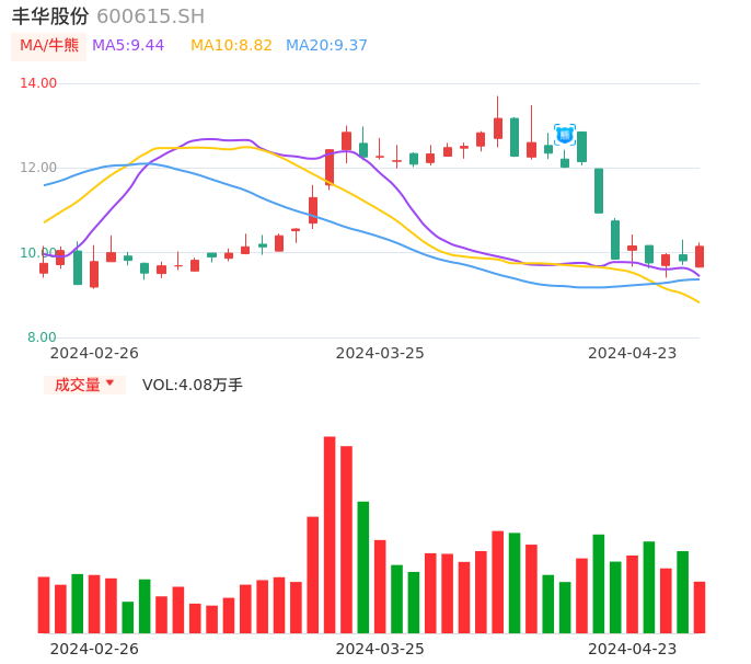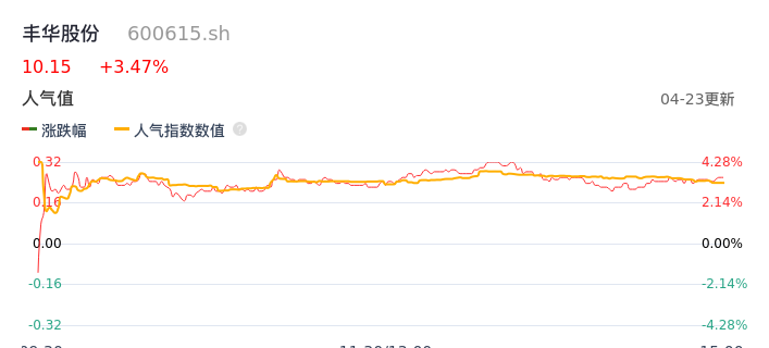 04月23日,丰华股份收报10.15,股价涨幅3.47%,成交金额4125.05万元,换手率2.17%。